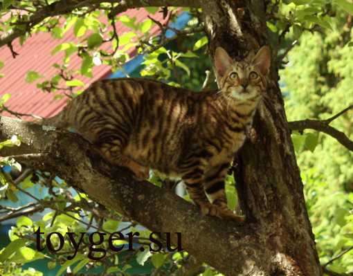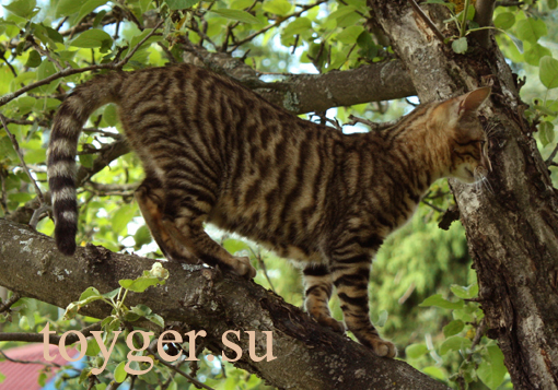 кошечка тойгер "Ясмин" из помета "Анфиса и Тигр"-шикарно контрастная, отличный рисунок на шкурке, шелковистая блестящая шкурка, мощного сложения, обещает быть крупной, с великолепной правильных форм головой, с длинным хвостом и отличным характером, маловато цвета.